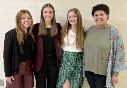 These six brave ladies were members of the Ram speech team, presenting their individual speeches at the district individual speech contest in Carroll. Aleya Bailey (Prose Interpretation), Ada Gee (After Dinner Speaking and Improvisation), Alex Wonder (Radio Broadcasting and Spontaneous Speaking), Chloe Wanberg (Poetry Interpretation), Caitlee Koenigs (Storytelling and Acting), and Nina McMillen (After Dinner Speaking and Improvisation) presented their entries in hopes of receiving 1 ratings to advance to state.