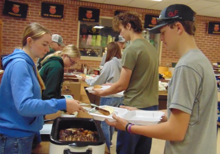 To the left, FFA members fill the carryout containers in preparation for delivering the meals. Photo submitted.