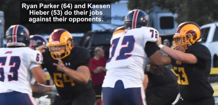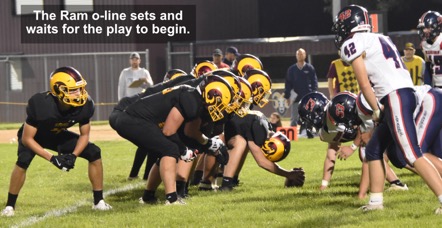 The Rams were restricted to just two touchdowns on this evening, both passes caught by Tanner Dixon. One TD was tossed by Cade Schmidt, and the other was thrown by Manny Cameron. Dixon's end zone catches combined with 2 other receptions for a team-leading 65 yards. Adlyr Redenius caught 4 receptions Bo Clausen ran the ball a total 46 yards to lead the team in rushing.