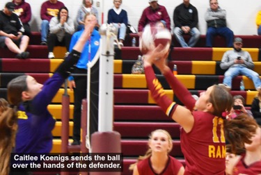 On the night, Caitlee Koenigs led the team in assists with 20 and in serves with 23. Brenna Mammen was the dig leader with 16 and had 10 serves. Bryndall Paterson was the block leader with 8 while Madelyn Petersen pounded down 13 team-leading kills. Madi also had 12 serves. Marley Scott sent 13 serves over the net while Chloe Hamman had 14 serves. Irelynne McNamara contributed 19 assists and 20 serves.