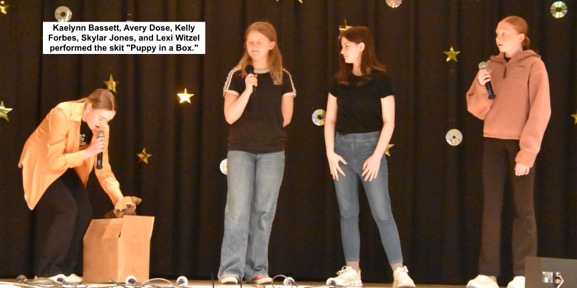 Aaron Wiederspohn, Zach Wiederspohn, Lexi Witzel, and Rylee Yockey performed the skit "Dirty Socks."