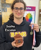 French Foreign Exchange student and Senior Sascha Escalon received the First Place Medal for his ceramic box which he made in the first Semester. Judges said that it was well designed and proportioned and had the look of a genuine antique which was ironic since it included markings from a current video game. Escalon was unable to attend the Art Show because he had a track meet that day.